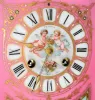 with Sevres panel dial and side panels, the rear with a beveled glass for viewing the movement. This clock is in outstanding original condition, and sure to please the most discriminating collector. Very minor losses of applied trim on the panels is virtually unnoticeable. On the front panel, a musician plays for his beloved, the side panels with aviary themes. All with eye catching pink borders , tiny aquamarine dots on a gilded border and additional tiny white pearl-like accents. The dial signed as in the headline. The movement recently overhauled by a seasoned professional and running reliably. Note the movement, pendulum and panels with matching number 40355. Height 113/4"