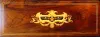 A very pretty box in rosewood with line inlay top and front, and a marquetry design on the lid, refinished some time ago with French polish and well done. It has a 12" cylinder playing on a two section comb, the primary comb with 97 teeth, and harmony comb with 24 teeth. The main comb has one missing tip, there are NO broken teeth, several dampers are noisy. The serial number on the original tune card (14454) matches the serial number on movement. Titles include: Viennese Bonbons (Strauss), Air de la Kermessee (Faust), Marche du roi Louis Xiii, La Sonnanbula, la Traviata, and Jolly Brothers . This box plays crisply but relatively quietly here in the house; remember it will be nearly impossible to hear it well in the auction hall. Height 6"