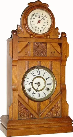 C.1885, New Haven Clock Co, very uncommon double dial, the Cabinet No. 7, in ash, and in excellent original condition.