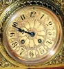 C.1890, French, Mahogany and Ormolu mantel clock in excellent original condition. This clock is made in the German style with around 20 separate pieces of heavy brass trim. All of the pieces are intact, and the case retains original finish. The well made square French movement is numbered 1661 and with matching number on pendulum. The heavy ormolu dial has a fancy cast overlay mask. A very impressive clock. Strikes the hours on a heavy coiled wire gong. Height 17 1/2"
