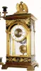 The only items that keep this from being excellent are small chips in the front, rear and one side glass (these are noticeable on close inspection, but not from a distance). The clock itself has winged horse mounts and is surmounted by an eagle with spread wings. The well made movement with Marti Medaille D'Or trademark. The original pendulum has concentric rings of tiny leaves. Width as shown 24"; ht 22". Impressive.
