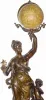 . The statue of Peace and child is holding the earth aloft in her left hand, and the gilded dove of peace in her right hand (careful, dove is separate with slide and has survived this long without getting lost). The 4 inch globe is by E. Bertaux, Rue Serpente 25, Paris. The globe is a bit dark and with some small rub spots, but has no major losses and is overall very good. The well made movement strikes the hours and halves on a bell, and with a fancy porcelain dial in excellent condition. Lt violet variegated marble base is good, with no damage and feet are intact. Height 29"
