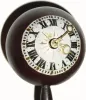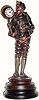 C.1880, French, Patinated Spelter, novelty clock, The Jester , in generally good original condition, with original finish on both statue and ball. This is a very uncommon model, the tiny 7-day platform movement contained within the 2 inch ball held in the jester's hand, (ball is removable for winding and shipping). Movement is wound with a regular key through a hole in the rear of the ball. Dial with some touch-up to numerals. Height 17"