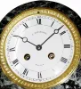 The excellent porcelain dial retains the name of the retailer: E. Lemarchand, Rennes. The center of the clock case bears an ormolu lyre with acanthus spray. Like the clock case, the urns are made of dark green/black variegated marble with similar ormolu trim, three sides bearing a wreath. Classic empire styling that is forever attractive. In running order. Width as shown 20", Height 15"
