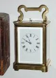 with orig travel case (less strap and with loss to leather). This is a nice clock in a clean Corniche case. All glass is good, and clock retains its' original lever platform and appears to be in sound operating order. Strikes ding dong quarters and gives full hours and quarters on demand. Height 7"