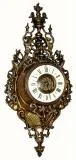 in the Rococo style, and in excellent original condition. Light cream color porcelain dial is perfect with bronze center insert. Cast brass bezel with convex beveled glass. Original hands. Cartel style case is complete and undamaged and with original bronzed look; has nice detail. Pendulum No.10506 matches number on original movement; which is running and striking. Height 22"