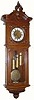 C.1890, Austrian, 3-Wt Baroque in generally good condition, as-found . The walnut double door case has nicely carved accents; top left return molding has been re-glued a bit crooked and the case has been varnished over the entire surface; other minor nicks. At some time someone has installed a matched set Remember movement (dial center, weights and pendulum retain original scroll pattern engraving in nice condition). No holes are visible in the back, but an extra set are visible when you remove the mounting bracket. The movement will need service, but is ticking and striking. An impressive clock that will respond to restoration. Height 48"