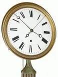 C.1860, French 8-day Pin Wheel with sweep second timepiece. This is a movement, pendulum and weight. The porcelain dial has small chip at 12 o'clock (barely noticeable). The nice convex dial is surrounded by a beautiful engine turned brass bezel. The movement has been cleaned and is running. The hands are the proper style for the clock, however the minute hand is a bit long for the dial. If you have an empty case or the skill to make one, this is an extra nice movement. Height 52"