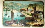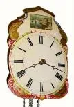 This example has a shield dial with village scene at the top. The dial which has a raised surface chapter ring and gold leaf trim is very clean (shows...