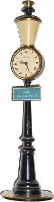 C.1955, Swiss, LeCoultre Rue de la Paix "Street Clock", mini souvenir clock, in excellent original condition. This example has a white lamp lens (they also came in clear). Has a good Swiss 7-jewel movement, going for 8 days. Ran for a couple of days and then stopped, so a cleaning is in order. Height 11"