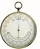 This is a very well made item with finely engraved brass scales with original silvering intact. Barometer scale from 15 to 31 inches, and altitude scale from "0" to 20,000 feet. The curved tube thermometer carries a scale from 0 to 130 degrees. Uncommon in this condition. Diameter 4 1/2"