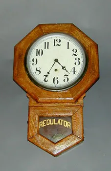 A SETH THOMAS OAK REGULATOR CLOCK.