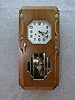 OCTAGON SILVER DIAL WITH ARABIC NUMERS. THE OCTAGON CHROMED PENDULUM IS VISIBLE THRU CHROMED LEADED BEVELED SIX PIECE GLASS. THERE IS CARVINGS ON THE DOOR SIDES AND STEPPED MOULDIINGS. THE 8 DAY MOVEMENT PLAYS THE WESTMINSTER CHIMES ON THE 1/4 HOURS AND STRIKES THE HOURS ON TUNED RODS. H-29" x W-14" x D-7"