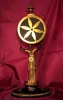 The totally bronze clock case holding the movement is ringed and decorative, matching the engined turned bezel . A convex glass covers the porcelain dial- which has typical Austrian black numerals. An urn and torch adorn the top. The movement is silk thread suspension . The gong stand is stamped: M. MILLER and SOHN in WIEN Running endurance about 2 days. Height 19 inches (48 cm) Width-at base 9 inches (23cm ) Depth-at base 4.5 inches (11.5cm )