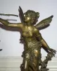 having two side candelabrums with five holders. An elaborate clock with lady statue-signed on front plaque: "FEE aux FLEURS" par L. Moreau The porcelain dial is signed: "Aug. Cadran-24 Fg- Montmartre, Paris" The movement is signed: "Vincenti-Medaille Bronze-1855" A grand clock set in excellent condition. Duration eight days Height 26 inches (66cm) Width: 13 inches (33cm) Depth- at foot-7.5 inches ( 19cm )