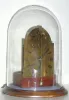 C.1760, Austrian, Crown Verge/ Cows Tail Movement, standing barrel, time only (pull repeat train now absent). This clock runs a few days, unlike most from this time period that have to be wound every day. Someone has mounted it to a block of walnut, added a new brass dial and hands and covered it with a glass dome. It does make an interesting display. Height of dial 7 inches Overall 13 inches. A European collector should have interest in returning this to a case.