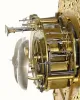 C.1820, French, Ormolu Mantel regulator in skeleton form, the two tiered case supported by 6 Egyptian style pillars. The garland surrounding the movement is supported by two winged mermaids with roses in their hand. There are a couple of repairs to the case, but no pieces missing and the gilding is quite bright. The well made silk thread, bell strike movement seems to be running OK. This clock would have had a dome when new, but will be fine in a showcase or display cupboard as well. Height 19 inches