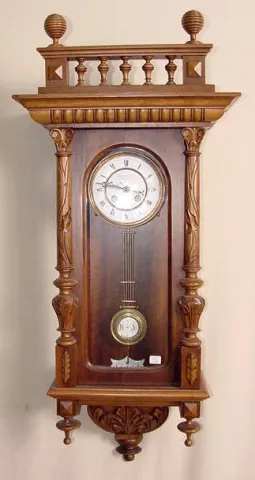 RA wall regulator in nicely carved mixed wood case, "Brauswetter Janos Szegeden", 38 inches Tall