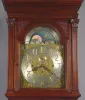 Circa 1910 13 inches brass and silvered dial has an 18 inches arch, is engraved "Tiffany and Co. ", 8-day, high quality brass 9-tube chime movement, massive finely carved yet masculine mahogany case with beveled glass door, brass dial with fine engraved gilt mask, silvered chapter, seconds bit, strike/silent, triple tune selector rings and painted moonphase wheel, recently undergone professional restoration, recently undergone professional restoration retains all original parts. Height 91 inches