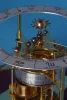English Planetary Orrery Timepiece, Contemporary 8 inches annular dial, 8-day, brass spring driven movement, brass and chrome plated brass body mounted on mahogany base, named in honor of the Earl of Orrery, excellent condition, lacking glass dome. Height 7 inches