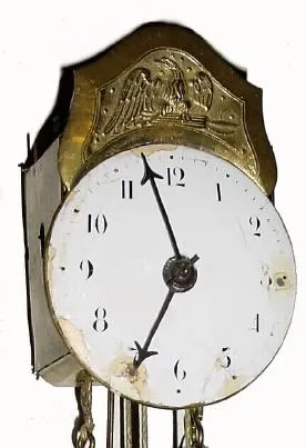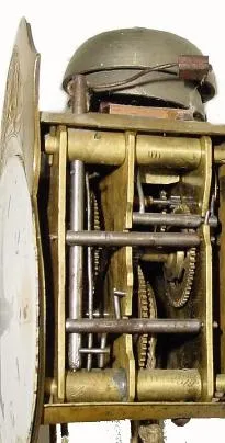 The dial is poor with several repairs that have turned brown, and damage to some numerals. There is a brass enclosure around the movement that we gue...