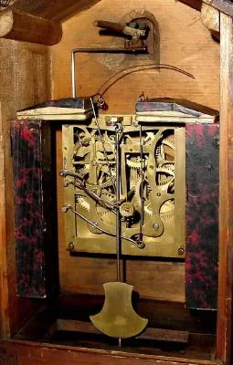 Condition: Oak case and dial have been cleaned and refinished. The brass spring movement is not marked and has been recently serviced., and is cucking...