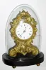 Condition: The clock is completely original and in ERO. The porcelain dial has a hairline at the 10:00 position (nearly invisible). The glass dome is original with a large section glued in on the back. Height of clock 9"; with base and dome 11.3"