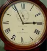 A late nineteenth century wall mounted regulator in a mahogany case. The repainted dial is signed for Bryson of Edinburgh, a well-known maker of repute. John Bryson worked in Dalkeith, a suburb of Edinburgh from 1836 to 1882. This clock dates from his latter years. The substantial tapered-plate movement has thick plates and four large pillars, maintaining power, high count pinions and deadbeat escapement. The pendulum, which is suspended from a bracket mounted on the backboard, has a slender ebony rod and a long cylindrical brass bob. The single weight is shaped and constructed so that it falls unseen behind the left hand edge of the glazed front door, leaving only the elegant pendulum in view.