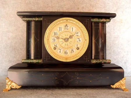 Black Adamantine Mantel Clock By Seth Thomas. Circa 1890.
