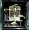 Antique Clock, Georgian bracket clock, twin fusee made by James McCabe, Sr. circa 1805, twin fusee bracket clock is 14 1/2" high, 11" wide, 6 1/2" deep. The clock is pristine and 100% original including the winding crank and front and rear door locking keys. The original ebony finish sparkles with only a few wear spots on the edges. All brasses are original and were polished and sealed over 25 years ago. The very good original enameled convex iron round dial, has a bit of crazing and a tiny bit of paint loss. Note the wonderful original brass hands. REFER TO THE BOOK "Complete British Clocks by Brian Loomes" page 56. The dial and movement are both signed James McCabe Royal Exchange London. The word London is mostly worn off of the dial. The No. 87 also appears on the dial. Considering the early date of the clock I feel certain that this is No. 87 of 7000 clocks that the firm made. They were locate at 97 Cornhill, Royal Exchange, London from 1802-1826. James, Sr. died in 1811. For the complete history of James McCabe refer to NAWCC Bulletin Dec. 1978. The clockworks is week duration with hour strike on original bell. It is a twin chain fusee with the original hand-made chain. The backplate, pendulum, and two mounting brackets are all hand engraved. The pendulum securing screw is still intact. The pull strike repeat is located on the right side. The front crystal and rear display glass are both original. Most books you pick up on English clocks will discuss James McCabe. This is an important clock and he was an important maker. The clock has been professionally restored and is 100% original.