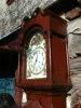 Many Pennsylvania German settlers brought their treasured clocks with them from the 'Old Country'. The cost of transporting the heavy wooden cases was often prohibitive, so some families simply brought the movement, pendulum and weights and temporarily hung them onto a wall (therefore the term 'WAG-ON-THE-WALL') until they were able to afford to hire a local carpenter (then known as a "joiner") to custom-make a case to house the works. This very attractive tall case clock was made around 1820 in the Ephrata, Pennsylvania area and bears the name of the case maker stamped several times into the back of the waist door. The name EPHRATA is also found on the seat-board of the clock movement, helping to identify where this attractive clock was cased. The clean, eight-day movement is housed between wood plates and retains its heavy brass gearing so typical of older German-made clocks. The movement was professionally cleaned and serviced for perfect operation through its eight-days of operation. Each hour is struck on a sweet-sounding bell and the hand painted dial is as colorful and well-preserved as they come (see photographs). NOTE: We photographed this clock on a sunny afternoon outside our shop and shadows from a nearby tree limb showed up in the resulting picture. In reality, the dial is in nearly MINT condition. There is the usual age crack on the base of the case (see photograph) which doesn't detract from the overall appearance of this stately clock in my book. The original red paint "wash" is also retained on the pine case. This is a very well made clock, priced surprisingly low... especially considering the strong and growing demand for high-style "Country Tall Case Clocks". Height: 84 in. (213.36 cm) Depth: 10 in. (25.40 cm) Width: 19 in. (48.26 cm) Weight: 40