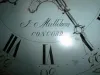 During the entire 18th Century, in and around Essex County, Massachusetts there were about a dozen Mulliken (also sometimes spelled Mullikan) clockmakers who were descendants of a 17th Century immigrant named Jonathan Mulliken. Jonathan was born in 1701 and settled in Bradford, Mass. where he trained several of his cousins in the clockmaking trade. This lovely Cherry cased clock was made by Joseph Mulliken, grandson of Jonathan. Joseph was the son of Nathaniel Mulliken and Lydia Stone. He was born in 1765 at Lexington, Mass. and worked in Lexington and later at Concord, Mass. from 1787 until his death in 1802. Joseph Mulliken married the former Hepzibah Flint. This clock is one of the very well-made tall case clocks that were typical of Mulliken's superior skill. The dial was made by James Wilson in Birminghan, England (as were many of the early New England tall case clock dials) and installed on Mulliken's 8-day movement and case. This beautiful and stately clock was produced toward the end of Mulliken's brief career-around 1795 to 1800. Notice the attractive fan inlay on the base (see our close-up photograph) and the colorful dial features. Unfortunately our lighting caused a reflection on the clock case. We are professional clock dealers, but somewhat amateur photographers! We are proud to be able to feature this particular clock and offer it for a very modest price. Professional shipping can be arranged throughout the Continental United States.Height: 92 in. (233.68 cm) Depth: 11 in. (27.94 cm) Width: 20 in. (50.80 cm) Weight: 50