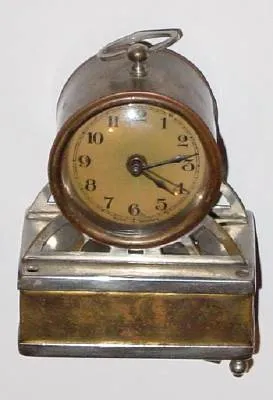 Condition: Small parker alarm with a dent in the case, hands setting knob and carrying ring missing. Westclox Baby-Ben deluxe in fair condition with stress cracks and corners missing on the base. German "Liberty" alarm made in Wurttemburg, Germany with corrosion on the base. Another German Alarm with a small music box in the base with two small feet missing. Music box is loose in the base (2 mounting screws missing), but it still sounds nice.