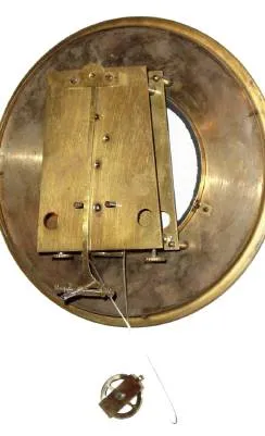 Condition: if you traveled in Austria in the 1950s, you would have seen one of these in many of the small post offices where you stopped to send post cards. They are a very practical clock, the movement mounting via 2 heavy brass pillars that extend clear through both front and rear plate, a very strong design. In addition, the pendulum has a hole and brass ferrule just above the bob, for screwing the pendulum in place for easy transport. The spade hands are large and easy to read. This particular clock is an excellent original example of the Austrian Postal clock. Height 40 inches