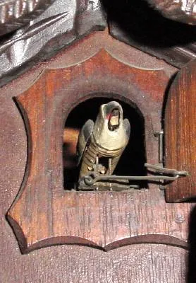 C.1915 German, Black Forest, 30-hour time/strike cuckoo clock, deer head and 2 goats.