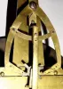 C.1810, French or Austrian, Movement only, pull wind via small rope, with unique dead beat escapement with escape wheel having 6 teeth only, and the escapement external to the clock, the round "pin" shaped pallets attached to the crutch and fully adjustable, clicked pulley attached behind the front plate. Condition: The 8" silvered dial is engine turned, although much of the pattern is worn away at this point. There is a sunken seconds bit turned right out of the brass dial, similarly engine turned within. Wheels have a high tooth count and we estimate the duration at 30 days or longer. There is a seconds hand, no others, no weight, no pendulum (would swing against the back of a case). The 4 mounting studs with original nuts are secured from the rear of the case with slotted spanner nuts, one stud bent. This is a unique and well made movement, with the special requirement of needing 5 inches of additional space above the dial for the apparatus that holds the crutch pivot. Ht from bottom of crutch to top = 14" [35.5cm]