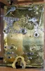 C.1870, French, Wood Cased Carriage Clock, time, strike, repeat, with calendar and alarm, the case with marquetry and line inlay. Condition: the case retains original finish, some minor corner losses to veneer and inlay. The movement has been restored and is running OK. Note this has a large and unusual cylinder platform, spanning the plates, with a ruby endstone over the balance staff pivot. Rack and snail on rear plate. The makers name is difficult to read, however he was in Lyon, France. Ht 10.5" [26.5cm]