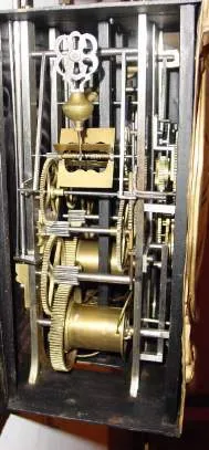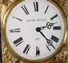 Condition: Somehow this clock got separated from its weights, however replacements are available from Timesavers or Merritts (be sure to look for 3 slender 12 pounders, as this model requires extra weight). The dial is signed as in the headline. Movement has been cleaned and re-strung. We checked with a long time resident of Paris who tells us this clock was surely in the office of the superior court appellate judge in Paris, and the name on the dial was its place of use, and not the maker. This is a very rare movement. Ht 55" [140cm]