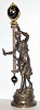 C.1890, French, Patinated Spelter Mystery Swinging Timepiece , or Swinger, the elaborate figure "Fleurs de Printemps", par Levasseur. Condition: one of the suspension springs broke and so we had to take the foto with the arm resting on the support (close up reveals the original parts are there). The rear of the sphere has had restoration. The numerals are plastic from an aftermarket dial set, glued onto the sphere. Movement, hands, rods and lower sphere are all fine. Good value for the workman who can attend to these items. Ht 34" [86cm]