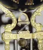 Condition: one of the suspension springs broke and so we had to take the foto with the arm resting on the support (close up reveals the original parts are there). The rear of the sphere has had restoration. The numerals are plastic from an aftermarket dial set, glued onto the sphere. Movement, hands, rods and lower sphere are all fine. Good value for the workman who can attend to these items. Ht 34" [86cm]