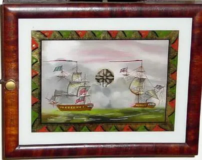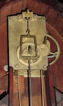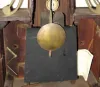 Condition: dial, hands and movement appear original to the case; however the pendulum swings at the top of the box, so may be replaced. Refinished mahogany case is complete with no cabinet restorations; top finial is new. Bottom tablet was professionally re-made, copied from the broken original which we have at the house on a board (yours for the asking). Ht 33" [81.5cm]