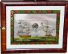 C.1840, Boston Area Weight banjo, unsigned, complete, as-found, Condition: dial, hands and movement appear original to the case; however the pendulum swings at the top of the box, so may be replaced. Refinished mahogany case is complete with no cabinet restorations; top finial is new. Bottom tablet was professionally re-made, copied from the broken original which we have at the house on a board (yours for the asking). Ht 33" [81.5cm]