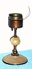 C.1890, French, Small Pendulette night clock, 30-hour, absent its time "globe". Condition: clock is as-found, dirty but still ticking. Timesavers in the past imported replacement globes for this model from France, but it is now a discontinued item. See also lot 531-d, shown with its globe. Height 6.7 inches [17cm]