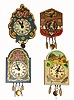 Lot of 4: C.1986 German, 30-hour miniature hanging novelty timepieces.