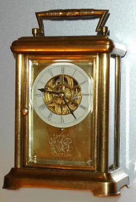 C.1885, Waterbury Watch Co. (yes), rare mini skeletonized dial, carriage timepiece, with rotary regulator (tourbillion), 8-day.