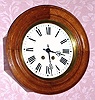 C.1890, French, BAKERS Clock in a round oak gallery style case with reverse painted glass dial. Condition; this clock was consigned from a shop and has been cleaned and is in running order. Diameter = 15" [38cm]