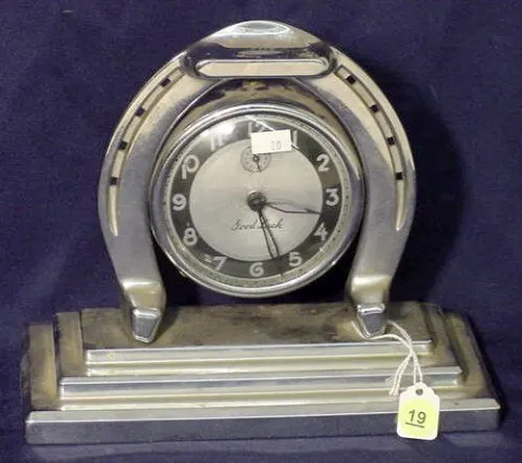 Lux Good Luck novelty alarm: chrome or nickel plated. (Surface deposits & a couple areas of corrosion to the plating.) Running at the time of listing, not guaranteed to continue. 7" T x 9" W