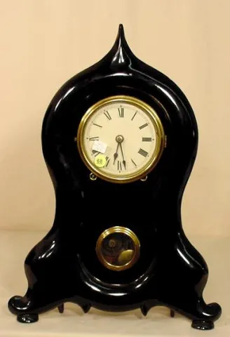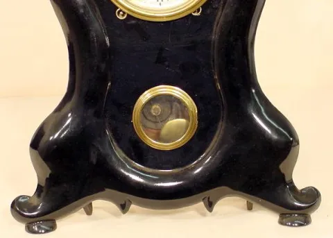 Iron front 8 day shelf clock. (Case & dial restored; not disassembled to determine maker.) Running at the time of listing, not guaranteed to continue. 19 3/4" T