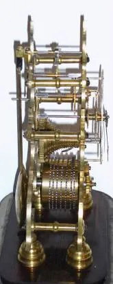 C.1860, English, Single Fusee SKELETON timepiece on original base with repaired dome.