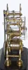 Condition: the clock frame got damaged at one time and Dana has soldered the top of the rear plate back in place, using some scabs for strength, old small clock pieces that happened to fit...this could be improved by a skilled workman. The main wheels all have 6 delicate crossings, and the motion works with 3. Note also that the front cover to the spring barrel is spoked as well. Running. Ht of clock 10.2", overall with dome and base 14"
